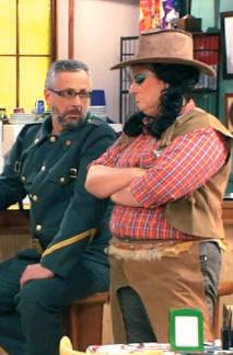 Nos conocimos durante el rodaje de una serie llamada “Escoba” de la televisión de Galicia. Yo hacía un personaje fijo y Anxo hacía uno que aparecía muy a menudo. Fue en el capítulo que dedicábamos al carnaval. Yo iba vestida de vaquero con dos coletas y él iba de guardia civil con tricornio… -nos comenta sonriente y nostálgica al mismo tiempo, mientras nos muestra una fotografía que recuerda ese momento-.