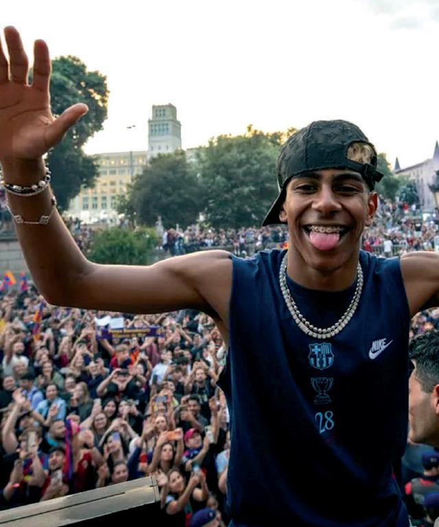 en el primer equipo. Nos cuentan en Barcelona tras indagar acerca de algunos rasgos de su personalidad que a Lamine “le importa mucho su entorno familiar… ya desde pequeño idolatra a los suyos, al círculo íntimo, a sus amigos verdaderos, a sus primos que son de Rocafonda” barrio humilde de Mataró.