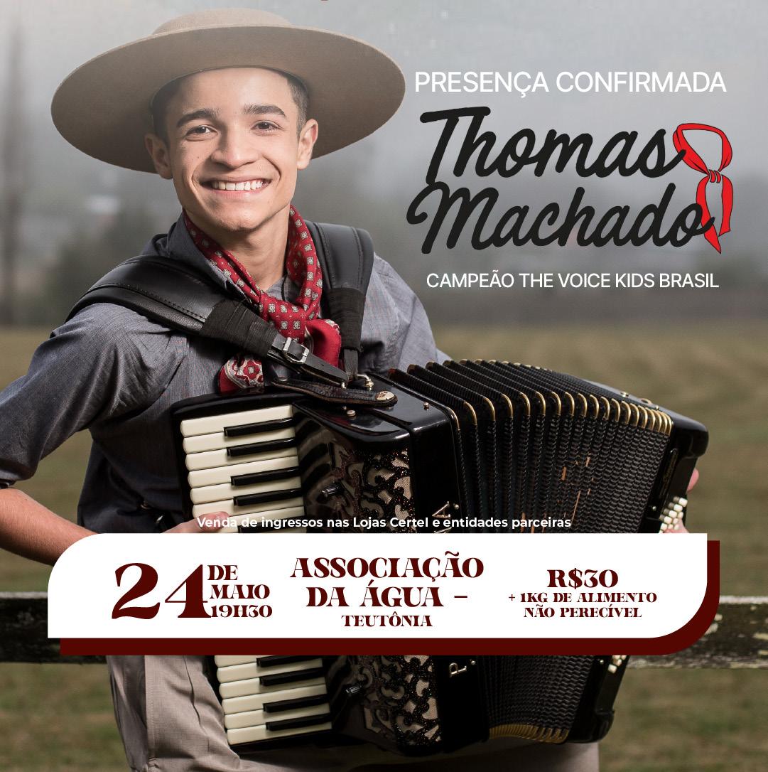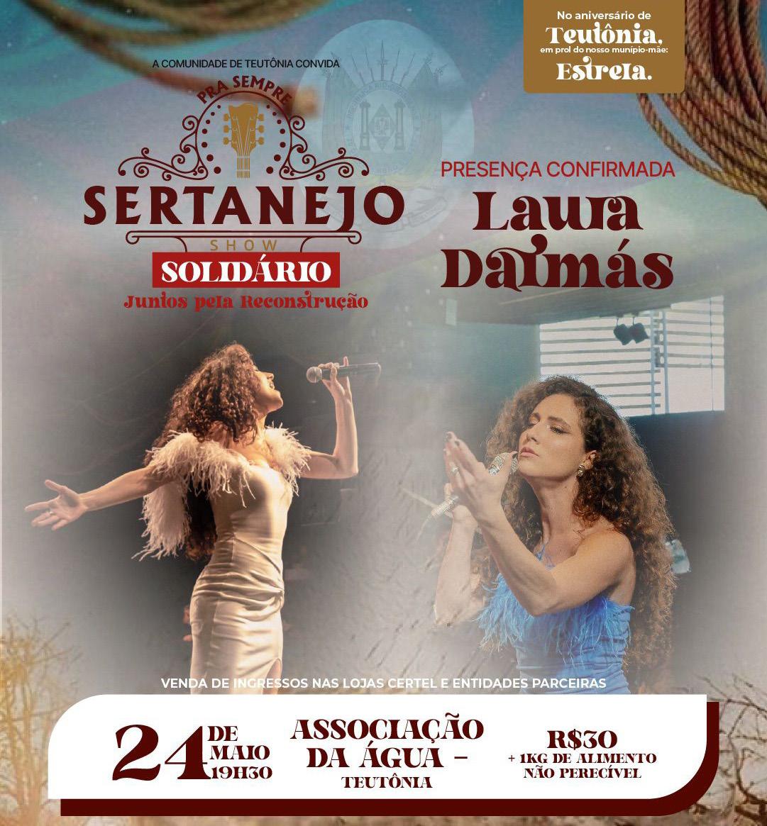 e Laura Dalmás, o espetáculo Pra Sempre Sertanejo, no ginásio da Associação da Água, em Teutônia, às 19h30. O evento é emblemático e tem caráter