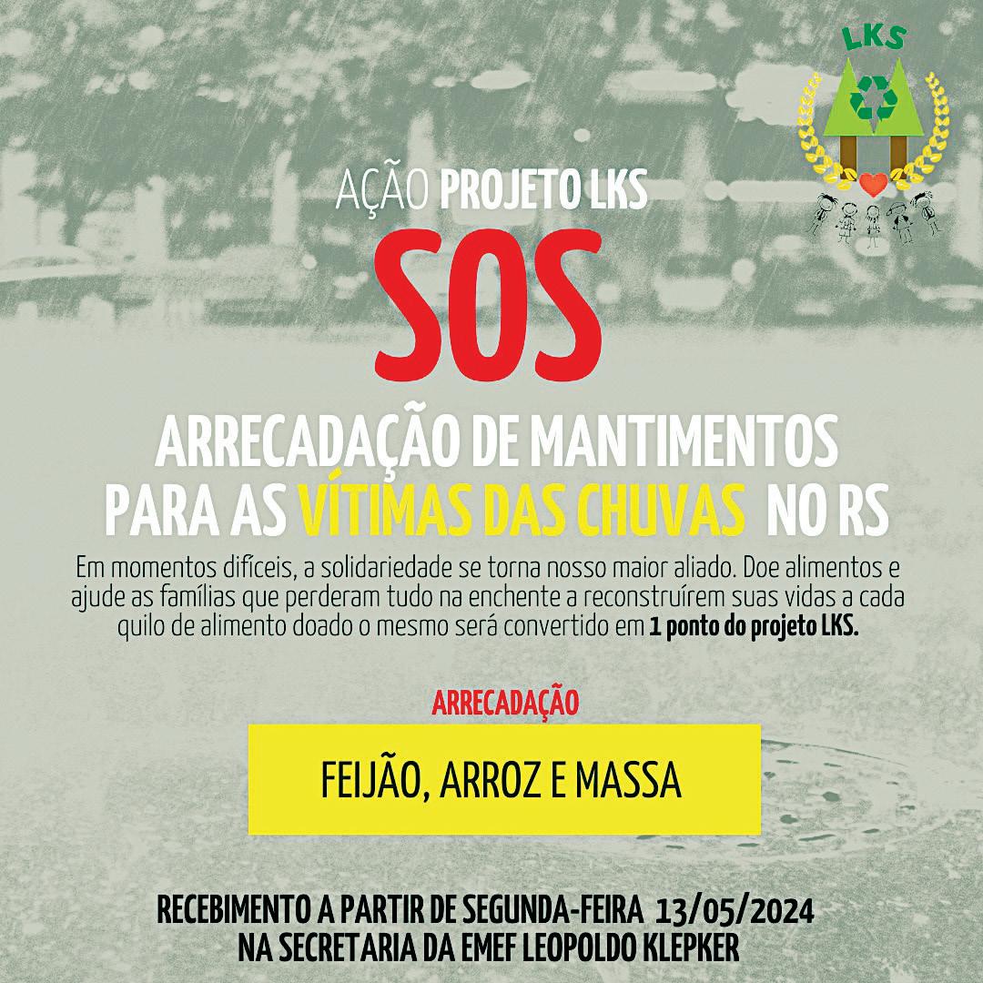 como parceiros: Sicredi, Cooperativa Escolar Cooperales e Secretria Municipal de Educação de Teutônia. Ainda dentro do projeto LK Sustentável, foi iniciada uma doação de donativos, especialmente alimentos não perecíveis, para serem entregues às famílias do Vale do Taquari atingidas pela enchente. As doações podem ser entregues na secretaria da escola. (A.I.)