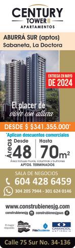 DESDE $ 126.608.000 San Antonio de Prado ABURRÁ SUR (aptos) DESCUENTO DE $ 12.000.000 Plazo hasta 6 meses PAGO DE CONTADO DESDE $ 100.000.000 La Unión ORIENTE ANTIOQUEÑO 310 495 11 60 - 311 644 62 71 JUNIO 2023 DE quienes te darán una asesoría gratuita. Escríbele a nuestros asesores de LINA ¿QUIERES COMPRAR UNA PROPIEDAD? DESDE $100’000.000 HASTA $2.405’040.000 301 286 50 87 301 672 00 85 Para más información ingresa a www.intercasa.com.co Locales Comerciales desde 13 m 2 Desde $131.413.000 Oficinas desde 10 m2 Á re as d e s d e 27m, 34m y 6 0 m 2 2 2 Desde $ 80.376.000 1 y 2 H ab i ta cio n e s Oficinas - Locales - Apar tasuites DESDE $ 122.535.000* DESDE $ 114.318.000 San Antonio de Prado, Los tanques ABURRÁ SUR (Aptos) Sobre planos 42.20 M2 Área construida desde Contáctanos 320 690 9730