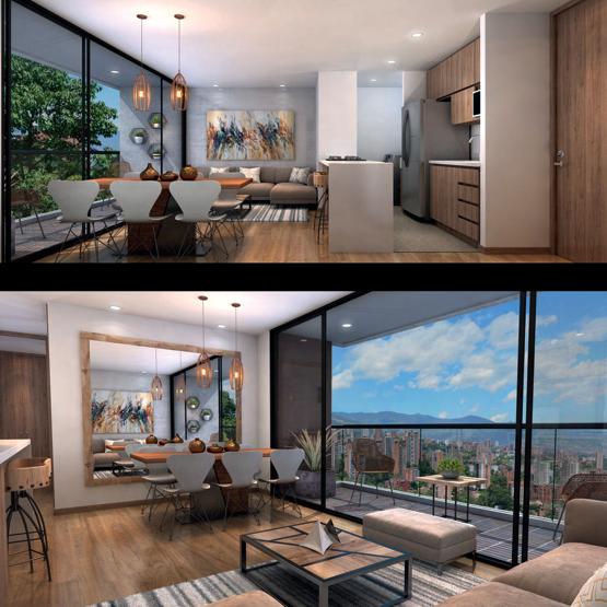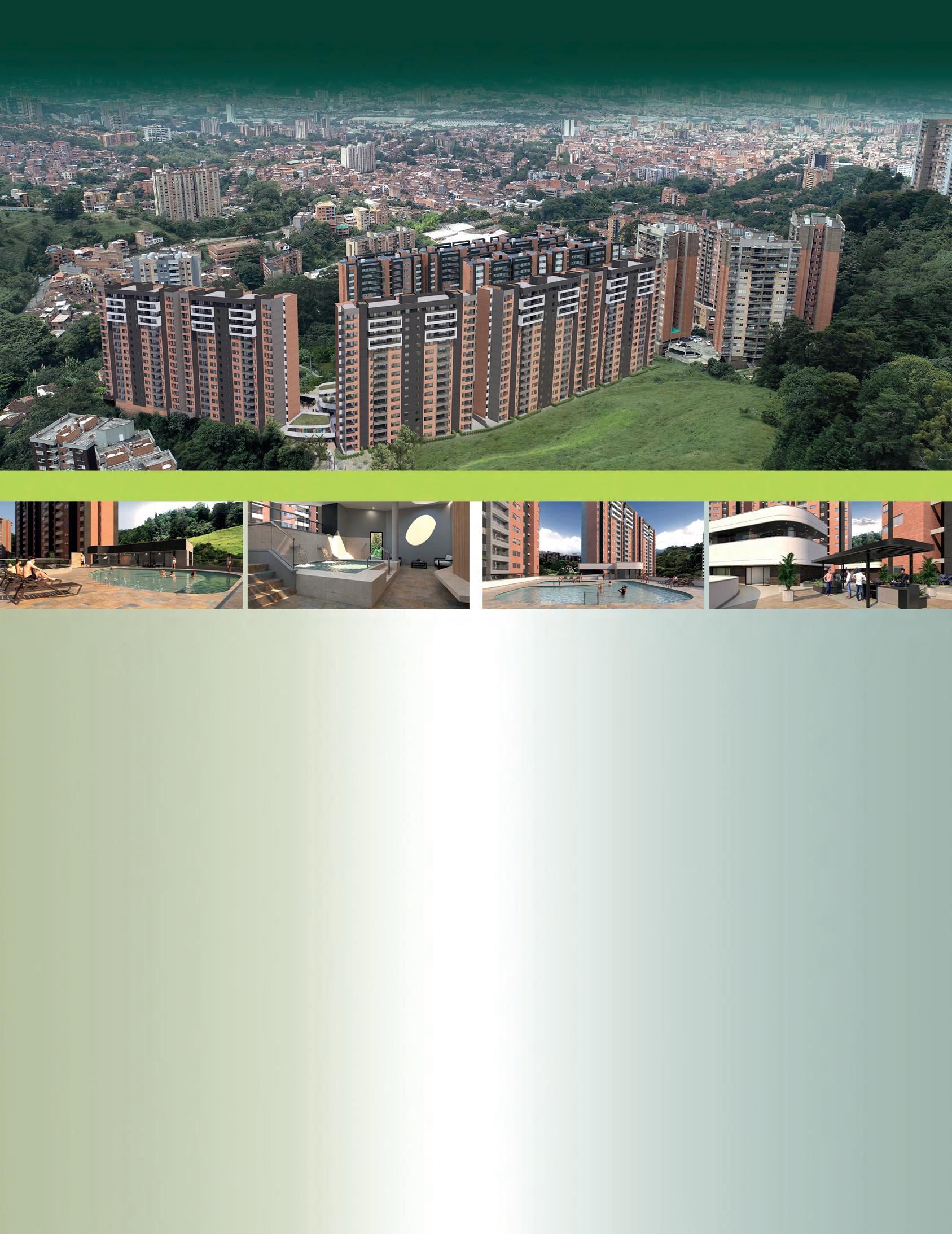 ENVIGADO - Transv. Intermedia ABURRÁ SUR (aptos) DESDE $ 945.440.000 DESDE $ 923.600.000 Sector Palmas POBLADO (aptos) Carrera 71a # 53a - 25 Cerro El Volador I.U. Luis Amigó El Diamante Av. Colombia Estadio Atanasio Girardot Cll. 51A Cll. 53 Cll. 55 Cra. 70 Éxito Express 314 411 0432 Imagen en proceso objeto de modificación por orden de entidad. El paisajismo de los predios vecinos al proyecto, que se aprecia en todas las piezas publicitarias, solo son una representación artística y no compromete a CONSTRUCTORA COLPATRIA S.A.S, dado que no son predios vinculados al proyecto en venta. El mobiliario es parte de decoración y no hace parte de la oferta comercial. El área total está discriminada en: área privada, área común (ductos, columnas, estructura, muros divisorios y muros de fachada) y área de balcones cuando aplica. Estas áreas pueden sufrir modificaciones como consecuencia directa de modificaciones ordenadas por la curaduría o la alcaldía competente en la expedición de la licencia de construcción. ÁREA TOTAL CONSTRUIDA DESDE: 102,02 m² ÁREA PRIVADA DESDE: 93 m² ÁREA BALCÓN DESDE: 9,02 m² Plazo de 7 meses para la cuota inicial. Entrega Inmediata constructoracolpatria.com DESDE $ 785.000.000 Sector Los Colores OCCIDENTE (aptos)