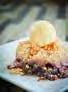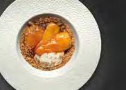 • On a soup plate, put some crumble, add a large spoonful of cream and gently add the roasted pears.