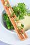 •Dans une poêle chaude et beurrée,cuire rapidement,environ 6 minutes,les Saint-Jacques assaisonnées,en gardant bien le cœur moelleux. Inahot,butteredpan,cookquickly,forabout6minutes,12seasonedscallops,keeptheheartsoft.
