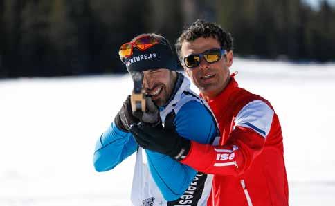 En plus d'apprendre la pratique du ski nordique, c'est l'occasion d'être en communion avec la nature. La neige est fraiche et la glisse est donc un délice. Nous revenons au stand de tir et nous nous essayons à nouveau à la carabine mais en gardant les skis aux pieds. S'allonger est en fait plus facile que si nous avions des skis alpins. À ce moment-là, nous prenons conscience de la difficulté de doser l'effort du ski nordique et la concentration du tir.