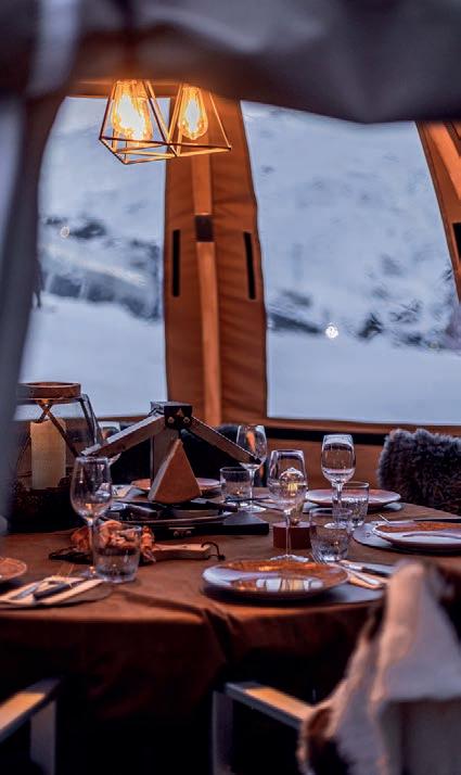 Toute l'équipe vous accueillent dans ce joli restaurant d’altitude (2750m) aux allures scandinaves. Les bons petits plats se dégustent à l’intérieur, sur la terrasse panoramique ou dans les petits chalets privatisables.