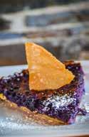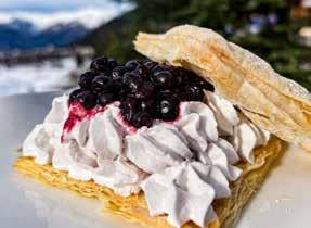 Pour finir sur un pic de gourmandise, la clémentine corse confite amène le soleil dans l’assiette avec une note acidulée… à moins que l’on ne préfère la douceur du mille-feuilles aux myrtilles et sa chantilly, qui semble se confondre avec les sommets en arrièreplan. Un vrai petit coin de paradis à découvrir pour le plus grand plaisir des papilles ! (S.R.)