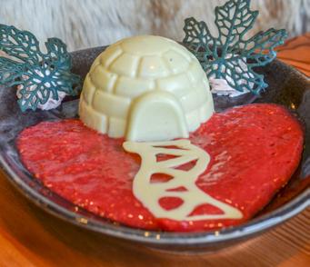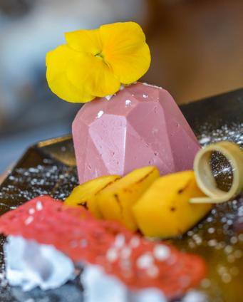 Au cœur de la galerie de Plagne Centre, Carine et Mickaël nous ouvrent les portes de leur restaurant traditionnel, Le Farçon, où l’on se sent comme à la maison. Ils nous servent viandes d’exception et authenticité sur un plateau : souris d’agneau à l’onctuosité inégalable, brochette de gambas et SaintJacques… Mention spéciale pour les desserts dignes d’œuvres d’art éphémères comme l’Igloo (chocolat blanc Valrhona, mousse framboise/coco…). L’envie de renouveler l’expérience est immédiate. PLAGNE