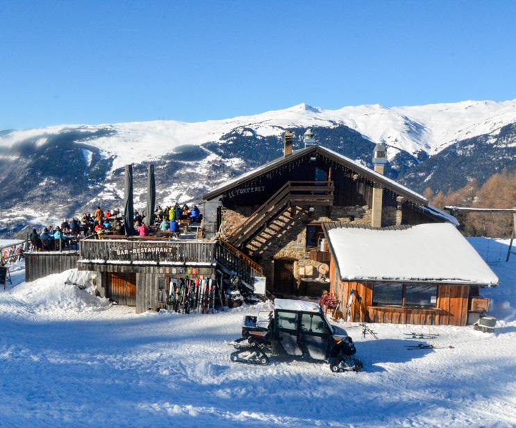 À skis, à pied, en voiture ou en chenillette, toutes les routes mènent au Forperet. Sur les hauteurs de Montalbert, on fait une halte ensoleillée et hors du temps dans cette ancienne bergerie typique. Avec une vue panoramique sur les célèbres massifs du Mont-Blanc et de la Lauzière, voilà un décor unique pour apprécier les recettes ancestrales faites maison et servies midi et soir. On craque notamment pour la fondue spéciale aux saveurs de tomme et de cidre : on y trempe du pain mais aussi des morceaux de pommes pour donner une touche acidulée à la spécialité locale... divin ! Sans oublier que la tomme est fabriquée sur place avec le lait des vaches de Roland, le propriétaire : un goût d’authenticité que l’on ne retrouve nulle part ailleurs !