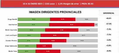 El estudio realizado por CB Consultora conocido este martes, revela que Santilli tiene el 40,3% de imagen positiva seguido por el gobernador Axel Kicillof (39,2%)