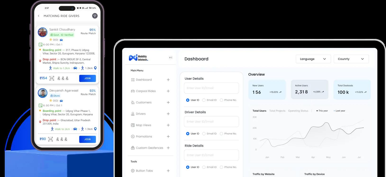 Get customizable & functional apps for iOS & Android platforms that enable a convenient & quick rideshare platform.