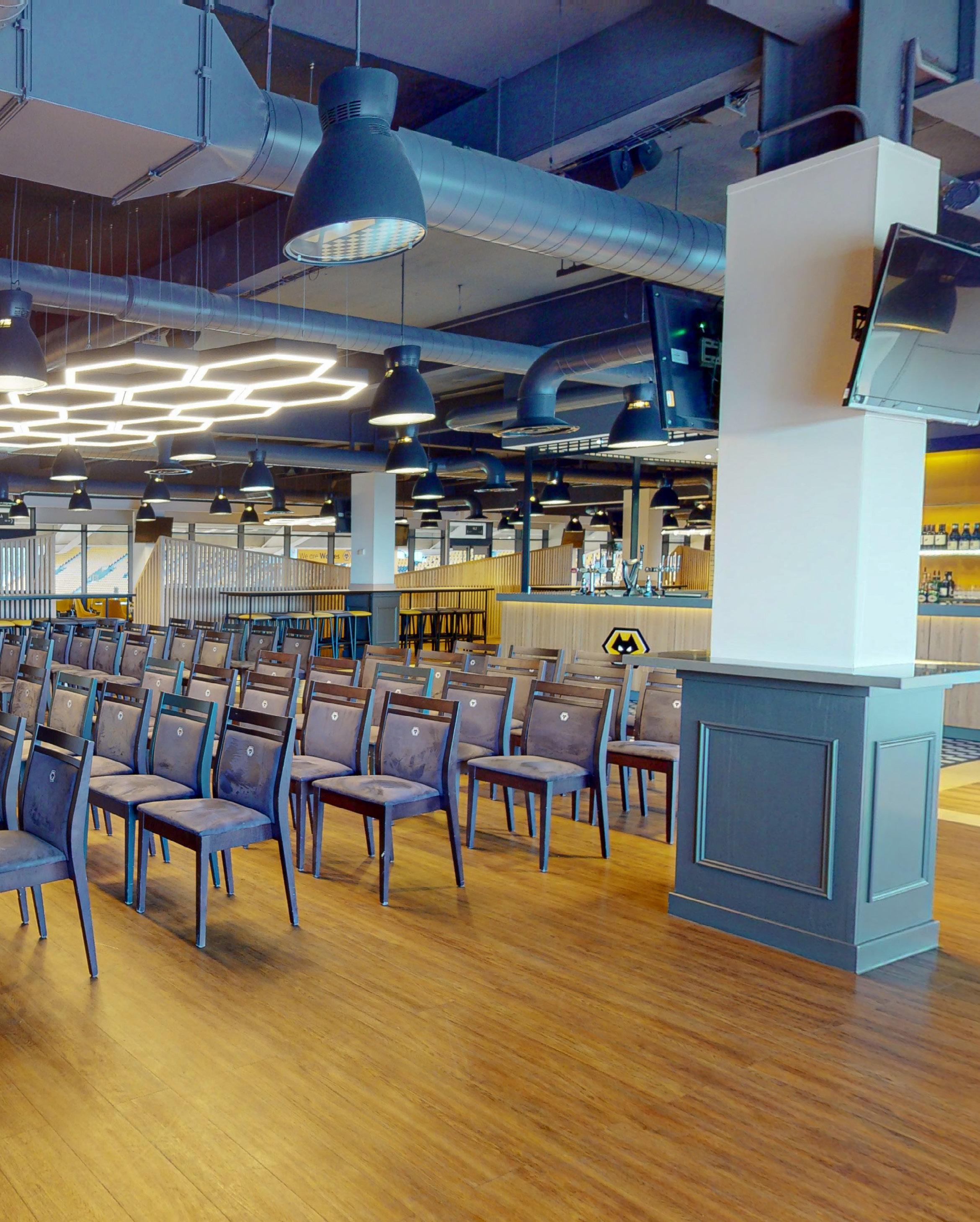 Whether formal or informal, The Molineux’s largest suite, WV1, treats delegates to unrivalled views across the pitch and city with stunning floor to ceiling windows. Alternatively, the room can be divided down into smaller rooms being WV1 Bar and WV1 Restaurant.