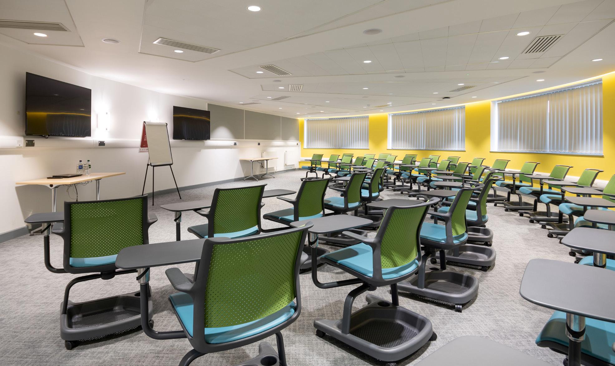 The Hive is an interactive workshop space where groups can immerse themselves, explore ideas, learn, and find solutions. Inside, you’ll find scholar chairs that are fully mobile, with foldable work surfaces and integrated under-seat storage, creating a flexible environment perfect for workshops, training sessions, and seminars.