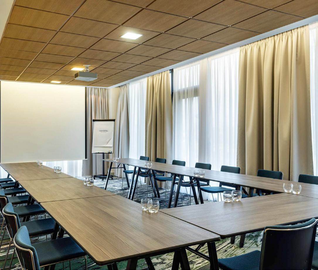 The hotel features three fantastic rooms, accommodating from 6 to 250 delegates or guests. The Churchill Suite, the largest of the spaces, is ideal for conferences and training sessions. It benefits from air conditioning, natural light, and doors that open onto a large terrace.