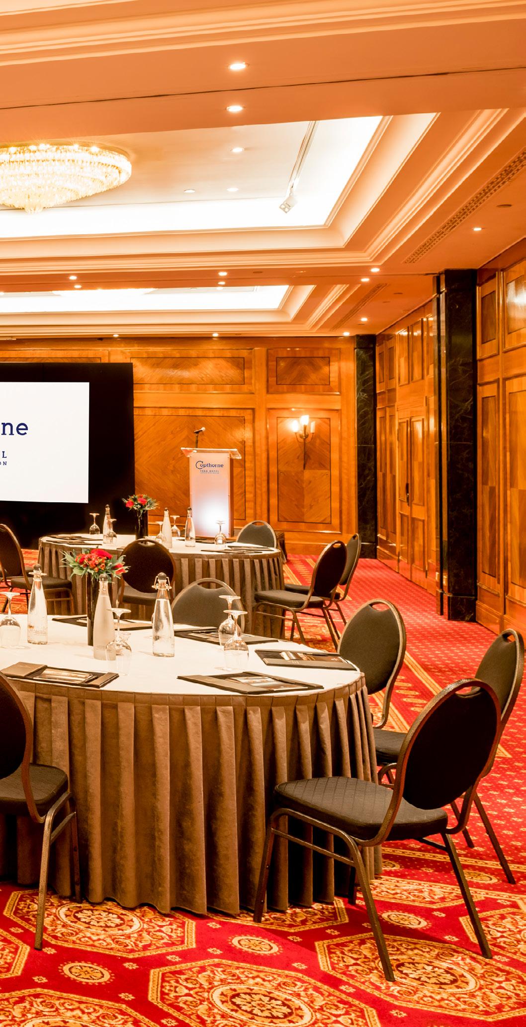 Large-scale events can be hosted in either the Shannon Suite on the ground floor or the Liffey Suite on the mezzanine floor. Both rooms are beautifully decorated, woodpanelled, fully flexible, and can be subdivided to create smaller spaces if required.