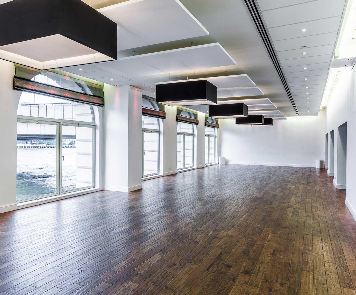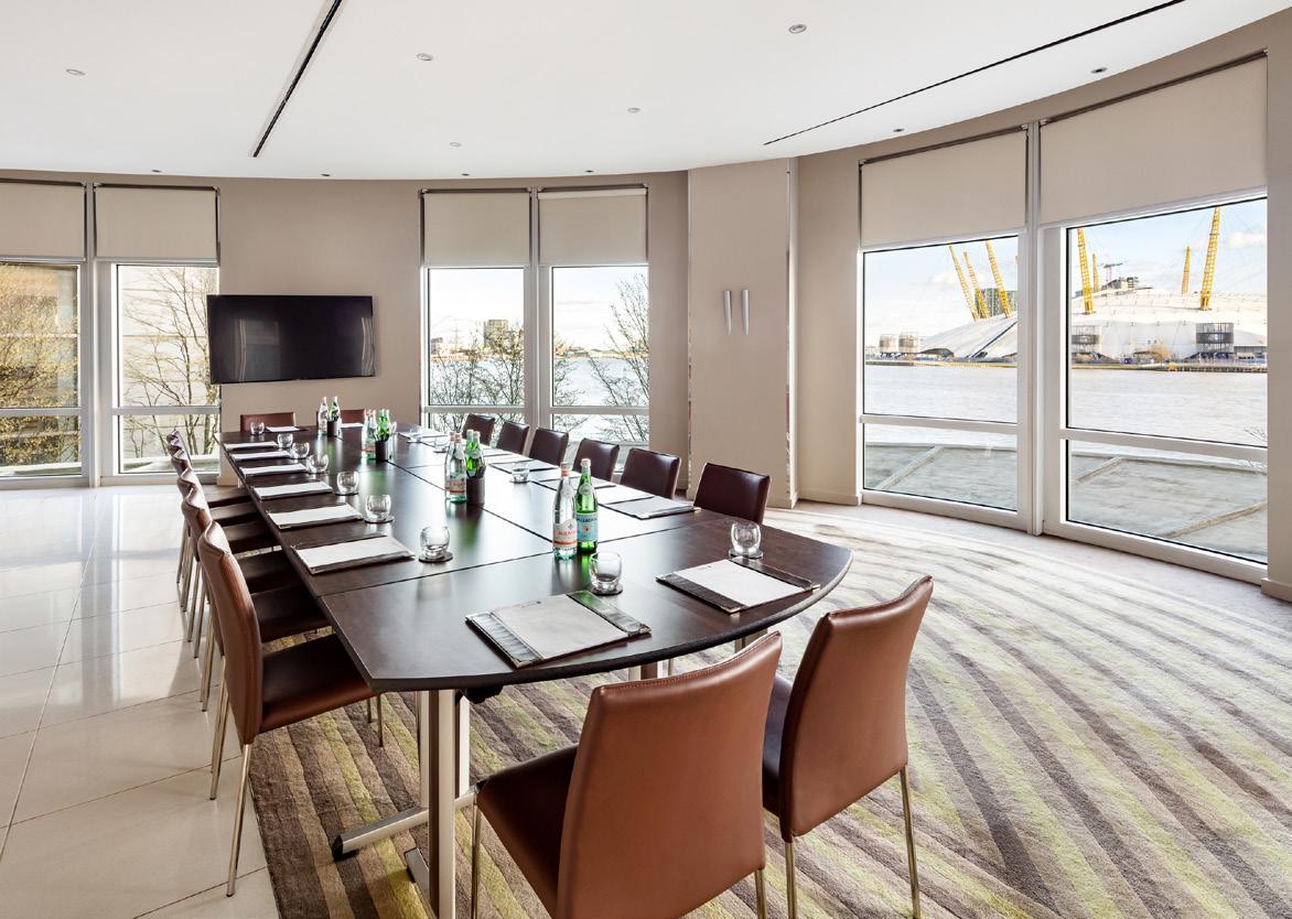 The Ontario Suite is the largest event space, accommodating up to 250 guests theatre‑style or 180 for dinner. It showcases a contemporary design with large windows and an abundance of natural light. The River Room, with its outstanding views of the River Thames and the O2 Arena, is a striking choice for meetings, dinners and receptions for up to 80 guests.