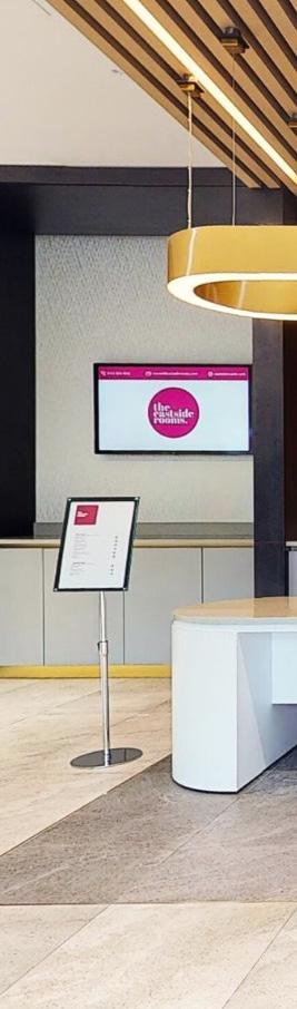 The three meeting rooms are ideal for training sessions, meetings or interviews and accommodate up to 100 delegates. Each space offers plenty of natural daylight, air conditioning, 75" TVs with multiple AV options, and free high‑speed internet.