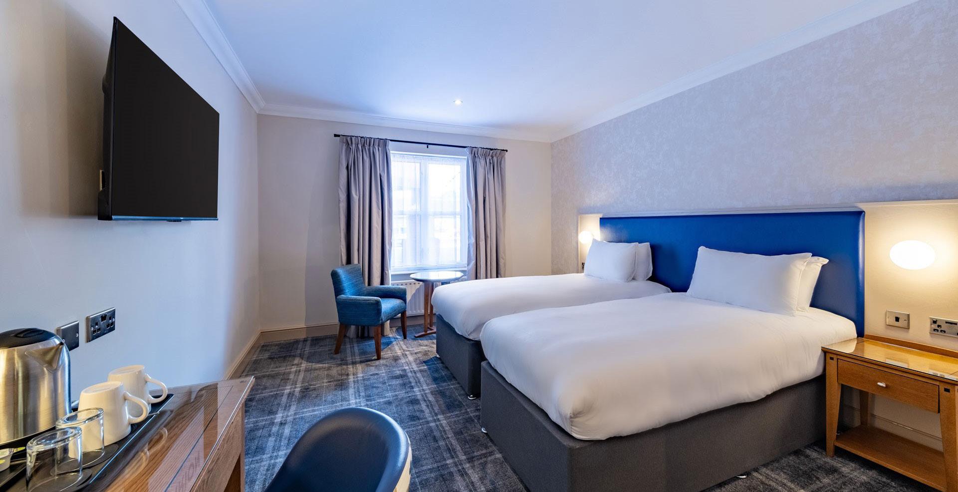 Whatever the reason for staying, relax and recharge in newly refurbished, home-from-home bedrooms designed to meet the needs of modern-day guests. Choose from a range of Classic Rooms or upgrade to an Executive Room equipped with free Wifi, complimentary toiletries and en-suite bathroom.