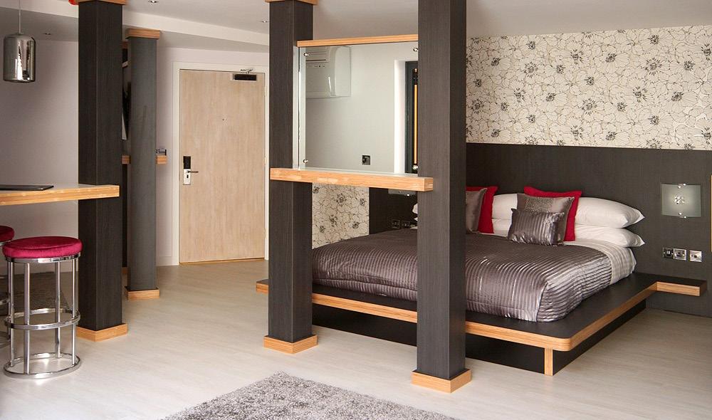 The standard double and twin rooms are beautifully designed and available at affordable prices. Each room features Hypnos® and Silentnight® beds, complimentary tea and coffee facilities, an oversized desk with an ergonomic chair, and fast, free fibre Wifi. Boutique hot tub suites are also available for a spacious and luxurious alternative.
