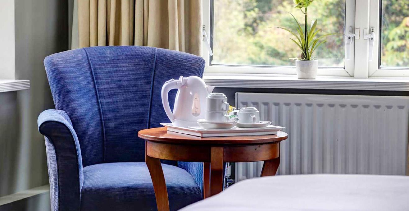 This picturesque hotel offers a wide choice of comfortably furnished accommodation, from spacious bedrooms and a self catering apartment to a dedicated family wing, pet friendly rooms, and retro inspired chalets. Each room includes a flat‑screen TV, tea and coffee‑making facilities, a hairdryer and en‑suite bathrooms. Recent additions to a number of rooms also include mood lighting and USB charging points.