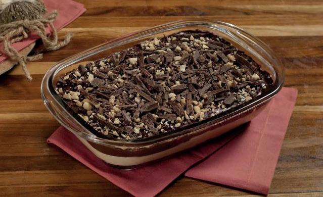 Leve ao fogo o leite condensado, o leite, as gemas, e a maizena, e mexa sem parar até engrossar. Retire do fogo e acrescente a baunilha. Junte o creme de leite, misture e reserve 1/3 deste creme. No restante do creme, pique o chocolate meio amargo e mexa até derreter. Em um pirex monte a sobremesa com uma camada de creme de chocolate, uma camada do creme branco reservado, uma camada de creme de chocolate. Salpique a castanha de caju. Para cobertura derreta o chocolate ao leite e coloque por cima até cobrir todo o pirex. Leve para gelar. Quanto mais gelado estiver melhor.