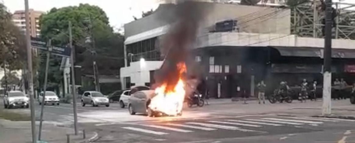 Carro em chamas na Rua Fortaleza, no Adrianópolis