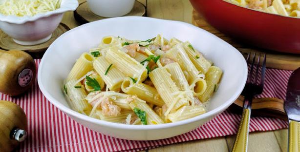 Tempere os camarões com pimenta, sal, páprica e metade das raspas de limão e reserve por 10 minutos; Em seguida, derreta 1 colher de sopa de manteiga com azeite e sele os camarões. Nessa mesma frigideira, adicione a outra colher de manteiga e refogue a cebola até murchar; Adicione o creme de leite e deixe por 2 minutos e reserve; Em uma panela grande, ferva a água já salgada. Cozinhe o macarrão e em seguida volte o molho ao fogo. Adicione 1 concha da água do cozimento do macarrão e o queijo parmesão ralado. Misture bem para incorporar. Coloque também a massa; Adicione o camarão e desligue o fogo. Finalize com as raspas de limão e camarões por cima.