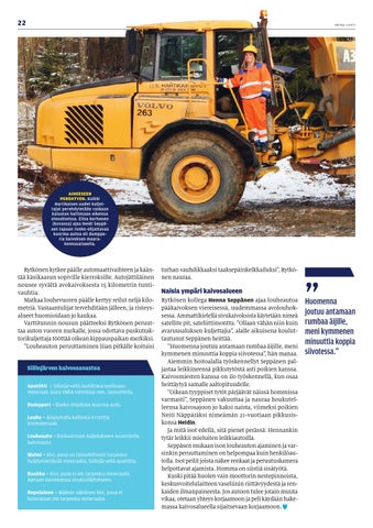 Naisia ympäri kaivosalueen Rytkösen kollega Henna Seppänen ajaa louheautoa pääkaivoksen viereisessä, uudemmassa avolouhoksessa. Ammattikielellä sivukaivoksista käytetään nimeä satellite pit, sateliittimonttu. ”Ollaan vähän niin kuin avaruusaluksen kuljettajia”, alalle aikuisena kouluttautunut Seppänen heittää. ”Huomenna joutuu antamaan rumbaa äijille, meni kymmenen minuuttia koppia siivotessa”, hän manaa. Aiemmin hoitoalalla työskennellyt Seppänen paljastaa leikkineensä pikkutytöstä asti poikien kanssa. Kaivosmiesten kanssa on ilo työskennellä, kun osaa heittäytyä samalle aaltopituudelle. ”Oikean tyyppiset tytöt pärjäävät näissä hommissa varmasti”, Seppänen vakuuttaa ja nauraa houkutelleensa kaivosajoon jo kaksi naista, viimeksi poikien Neiti Näppäräksi nimeämän 21-vuotiaan pikkusiskonsa Heidin. Ja mitä isot edellä, sitä pienet perässä: Hennankin tytär leikkii mieluiten leikkiautoilla. Seppäsen mukaan ison louheauton ajaminen ja varsinkin peruuttaminen on helpompaa kuin henkilöautolla. Isot peilit joista näkee renkaat ja peruutuskamera helpottavat ajamista. Homma on siistiä sisätyötä. Kuski pitää huolen vain moottorin nestepinnoista, keskusvoitelulaitteen vaseliinin riittävyydestä ja renkaiden ilmanpaineesta. Jos autoon tulee jotain muuta vikaa, otetaan yhteys korjaamoon ja peli käydään hakemassa kaivosalueella sijaitsevaan korjaamoon.