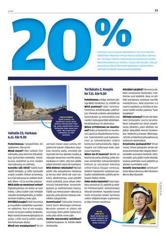Riittääkö tekijöitä? Olemme jo pit kään onnistuneet löytämään rivei himme uusi tekijöitä. Kyse on pit kälti asenteesta: annetaan nuorille mahdollisuus. Rekrytoimme 1–3 nuorta vuosittain, ja monista on kas vanut meille vuosien saatossa ”luot topakkeja”. Oletteko somessa? Emme ole koke neet toistaiseksi suurta tarvetta. Nuori sukupolvi tuo oman osaami sensa tähänkin, joten eiköhän me jollain aikavälillä mennä Faceboo kiin, Twitteriin ja Instaan. WhatsAppryhmiä on käytössä työsuojelussa ja sisäisessä viestinnässä. Kirjoitatko joulupukille? Ilman muuta. Toivon joulupukin vievän val tiovarainministeriöön lahjaksi liiken neväylille suunnatun kestävän rahoi tusmallin, jota pitäisi myös käyttää. Jouluna pistetään vuosi pakettiin ja aletaan suunnitella uutta. Kenelle seuraavaksi soitellaan? Soita Maanrakennus Martikaiseen Minna Martikaiselle. S L A S FA LT T I OY