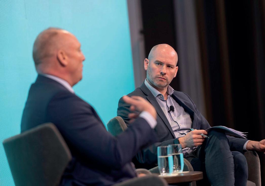 Chief Executive Offi cer Adrian Dwyer speaking with Greg Boorer