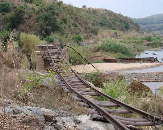 Erosion of the railway line adjacent to the Ruo River looking across to Mozambique