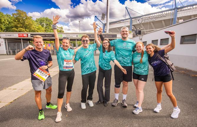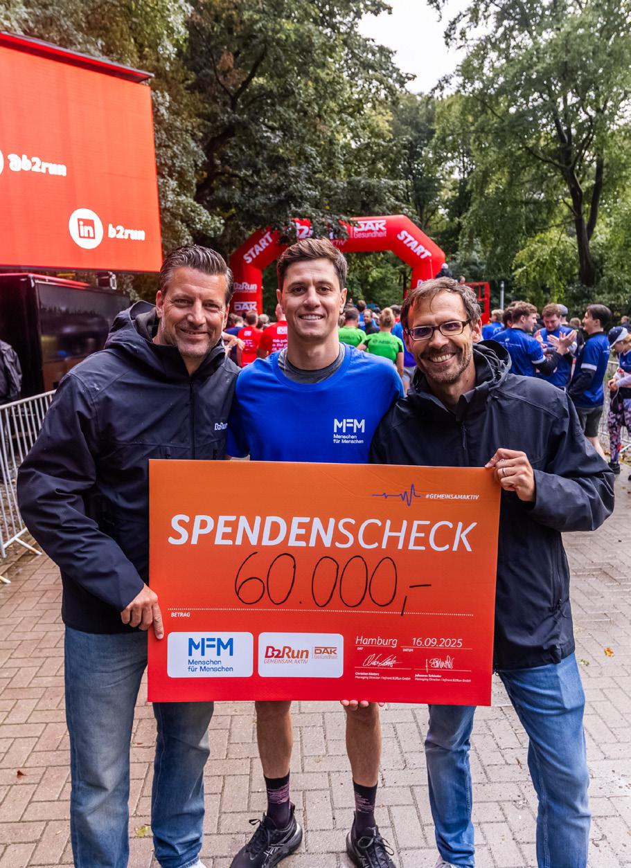 Zu diesen Dingen gehört, wie schon seit 2017, die Förderung von Projekten für regenerative Energien durch CO2-Zertifikate in Zusammenarbeit mit First Climate – in diesem Jahr ein Biomasse-Projekt in Indien. Außerdem konnten wir gemeinsam mit Menschen für Menschen erneut 12.500 Bäume in Äthiopien pflanzen. Je einen Baum symbolisch für jedes Team, das 2025 bei einem unserer Läufe dabei war. Dank des Engagements zahlreicher Unternehmen als „Charity-Starter“ konnten wir zudem einen Spendenscheck über 60.000 EUR an Menschen für Menschen zur Förderung der Trinkwasserversorgung in ländlichen Gebieten übergeben. Darüber hinaus haben wir erneut an vielen Stellen mit GEMEINSAM FÜR VIELFALT ein Zeichen für ein weltoffenes und tolerantes Miteinander gesetzt. In Zeiten medialer und politischer Polarisierung sowie starker gesellschaftlicher Individualisierung erscheint uns die verbindende Wirkung des Sports bzw. des Laufens wichtiger denn je.