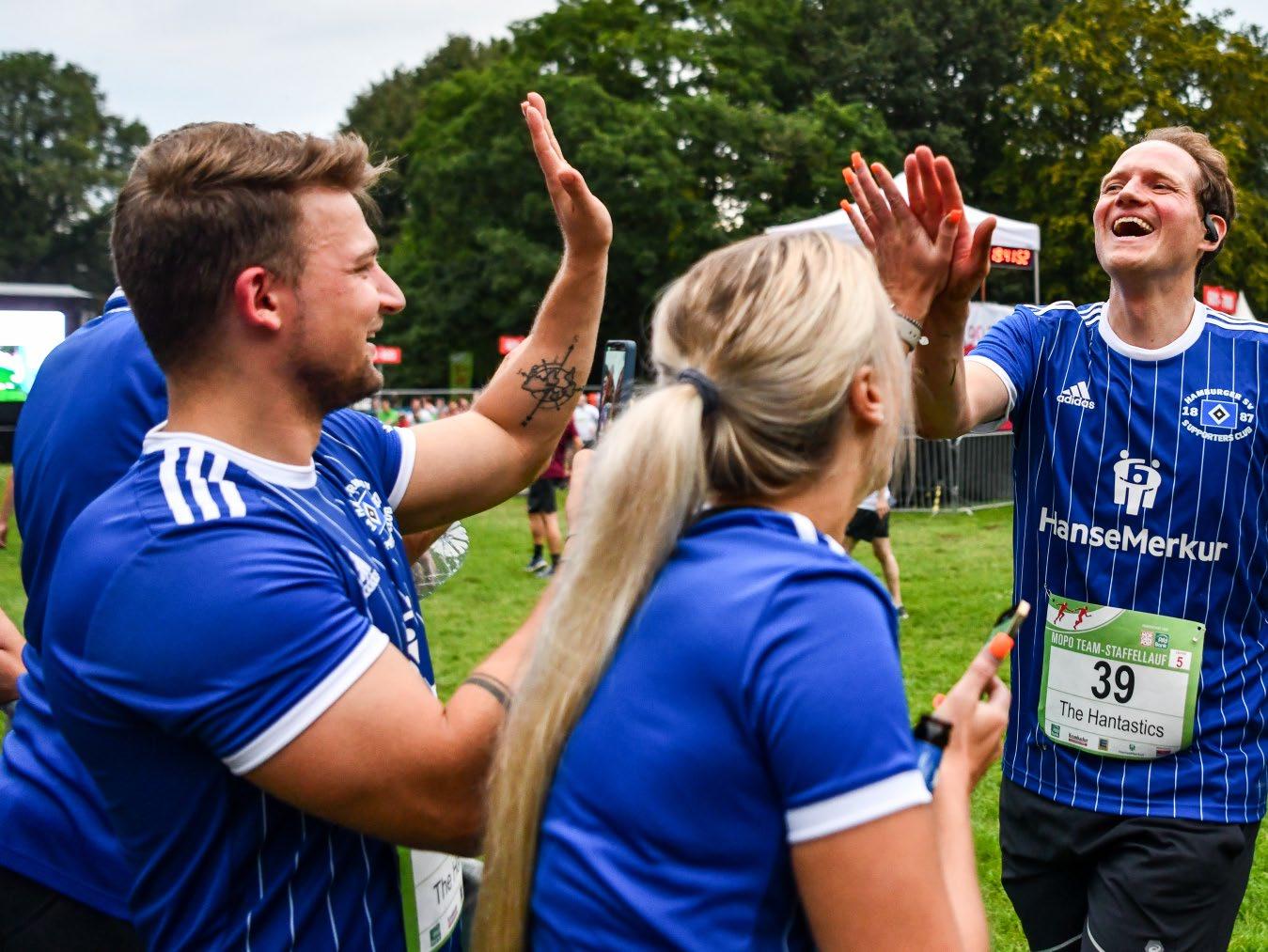 Beim MOPO Team-Staffellauf laufen fünf Kolleg/-innen oder Freund/-innen zusammen als Staffel je 5 km. Am Ende wird nur die Gesamtzeit der Gruppe festgehalten: Es werden insgesamt 10.000 Teilnehmende (2.000 Teams) und viele tausend Zuschauer/-innen im Hamburger Stadtpark an zwei Veranstaltungstagen erwartet.