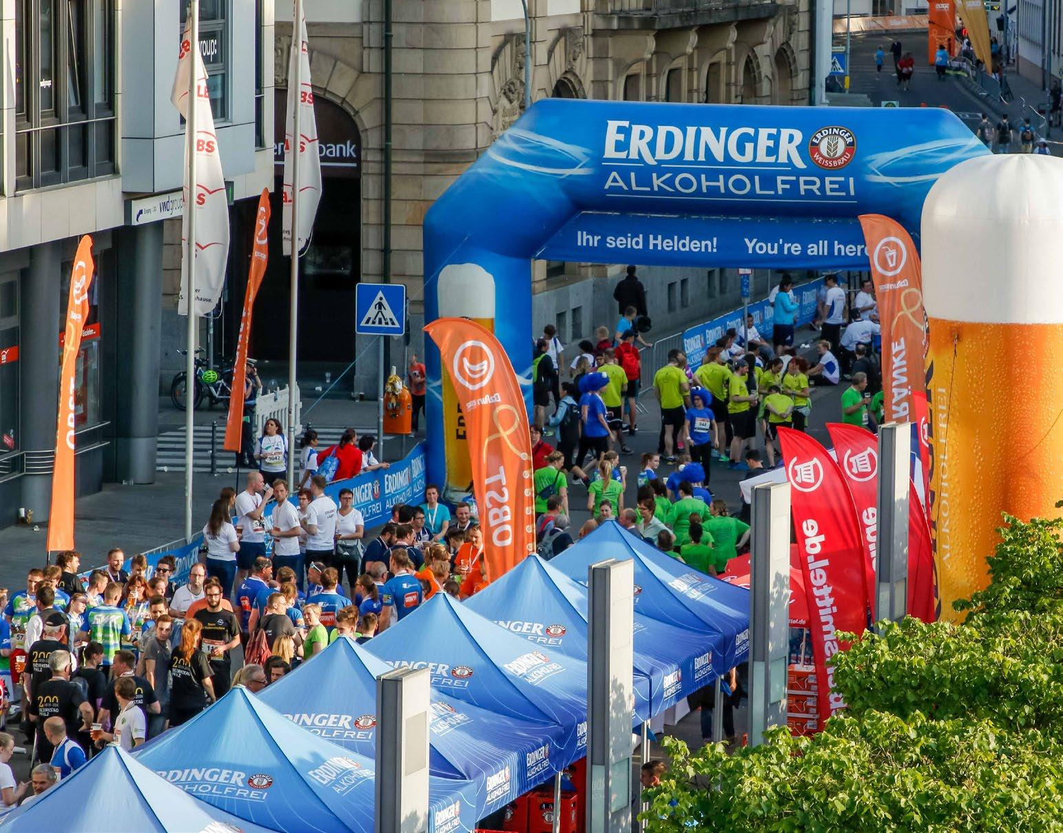Seit 2009 der sportlich isotonische Durstlöscher bei B2Run – ERDINGER Alkoholfrei.