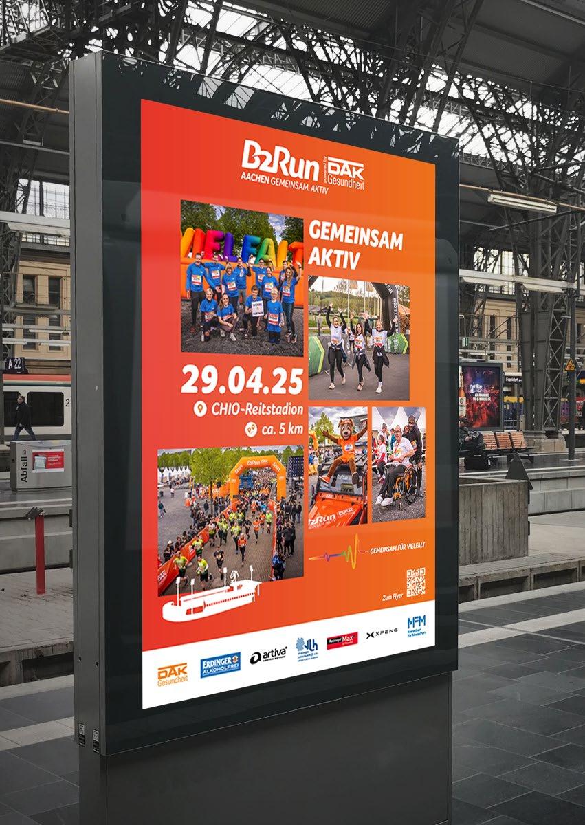 Umfangreiche Logopräsenz durch CompositeLogo in der kompletten B2Run Kommunikation (Out-of-home Kampagne, Werbematerialien, on-/offline Marketing, etc.)