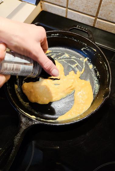 Mix in the sifted dry ingredients and add in the melted butter Divide equally between 2 x 15 cm discs and bake at 170 C for 8-12 minutes