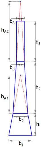 DE LA ESTRUCTURA Y LAANTENA 5.1 ESTRUCTURA Peso total de la estructura ≔ P ST 3105 k g f Sección transversal ≔ ST Cuadrada Ancho de base b 1 ≔ b 1 4480 m m Ancho de base b 2 ≔ b 2 2800 m m Ancho de base b 3 ≔ b 3 1520 m m Altura h 1 ≔ h 1 4250 m m Altura h 2 ≔ h 2 9820 m m Altura h 3 ≔ h 3 7685 m m Altura Total ≔ h T = + + h 1 h 2 h 3 21755 m m Figura1.Imagenreferencialdelaestructura Altura h A1 = h A1 7083.33 m m Altura h A3 = h A2 11661.25 m m 5.2 ANTENAA1 Peso de la antena ≔ P SA 32 k g f Diámetro de la antena ≔ ϕ A 1200 m m Ancho de la antena ≔ E A 748 m m Altura desde la base de la torre ≔ H A = h T 21755 m m Espesor del tambor ≔ e A 4 m m Figura2.Imagenreferencialdelaantena