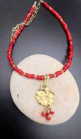from top: Amanda Sumpter, Always Playing Catch-Up; Emma Stanton, Red Sun Necklace, murano glass and gold filled beads with 18ct gold vermeil pendant; Kate Scott, Survived, acrylic on canvas; Jane Sarre, Flow, photo Alex Brattell