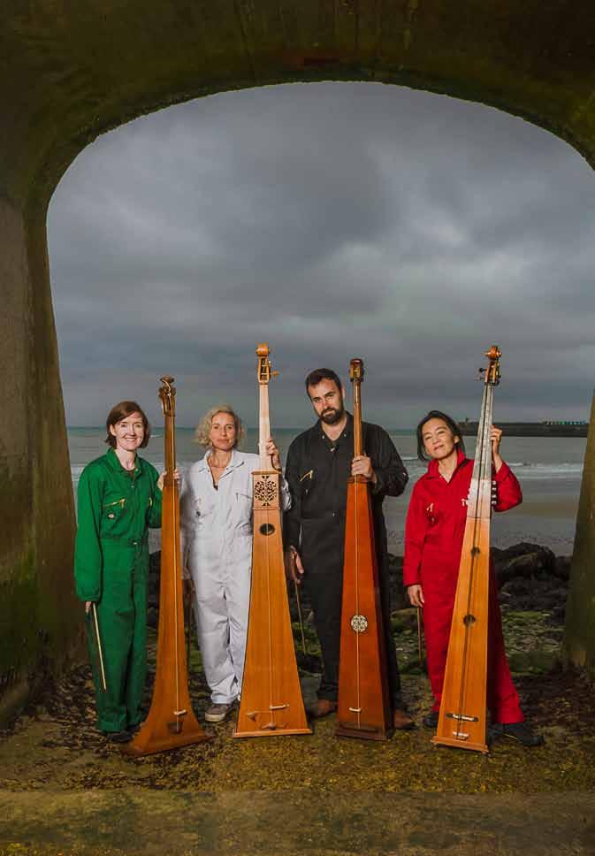 Trumpet Marine Quartet from 'Introducing the Trumpet Marine', Brighton Early Music Festival (see page 39). The players are: (from left to right) Jean Kelly, Clare Salaman (director of the ensemble), Sam Stadlen, Reiko Ichise. The trumpet marine is a rare 17th century instrument; the quartet was specially commissioned by Clare Salaman of The Society of Strange and Ancient Instruments. Photo by Ruth Keating