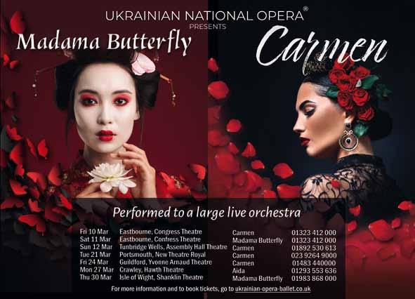 Aida: Thu 2 Mar / La Bohème: Thu 4 May anvilarts.org.uk DE LA WARR PAVILION, BEXHILL-ON-SEA Madama Butterfly: Sat 11 March / La Bohème: Sun 12 March dlwp.com THE KINGS THEATRE, PORTSMOUTH