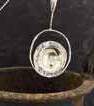 Her predominant technique is roller texturing, an unpredictable technique using rolling mills and natural or manmade materials. The object disintegrates leaving the surface of the metal with an ethereal texture, which in conjunction with semi-precious stones and beads creates a body of work with sensitivity and subtlety working in sympathy with the wearer.