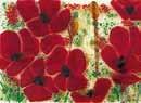 Seeing these poppies she thinks of a quiet corner of a foreign field, wild poppies and fragments of dark slate, white bones of a song bird, or maybe fallen men. Him.