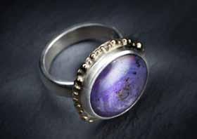 above left: Lorraie Gibby, sapphire ring above: Faye Bridgwater, Artist Open Houses