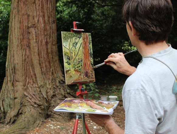 top: painting outside; inset: Hannah Mansfield, goldwork lobster