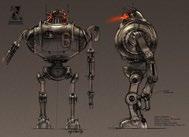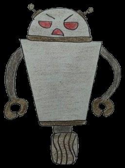 Descripción física: Un robot de aspecto improvisado, con un cuerpo trapezoidal de metal oxidado y brazos largos terminados en pinzas. Sus ojos rojos brillan con malicia y su antena torcida chisporrotea con energía. Habilidades y ataques: Puede lanzar sus pinzas y volver a recuperarlas con un cable retráctil. Es más ágil de lo que parece, saltando grandes distancias para evitar ataques.