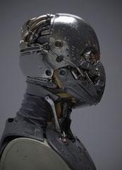 El robot se pone de pie, completamente restaurado. Su mirada brilla co