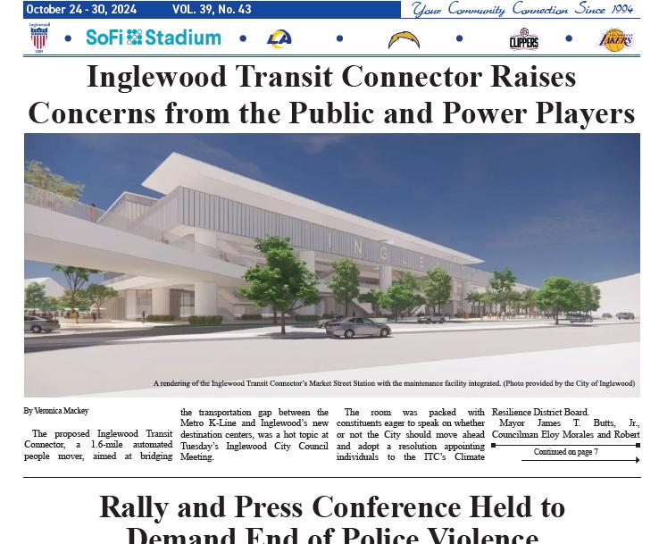 More than iust a local news source, Inglewood Today has always stood for fairness in journalism. We have fought to change negative, distorted images of our community. In fact, our newspaper was created specifically to counter salacious stories about Inglewood as a community of drugs, poverty and crime.