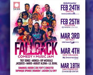 Featuring MONICA, TREY SONGZ, MARIO, RIP MICHEALS, AUGUST ALSINA, WOODLAND HILLS, CA – Black owned 5120 Entertainment has partnered with four Black newspapers in three cities to promote the spectacular Rip Micheals hosted Fall Back in Love Comedy & Music Jam in Dallas, Houston and Detroit starting on February 24, February 25 and March 3rd