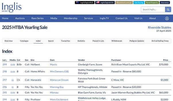 Yearlings catalogued in the Inglis HTBA Yearling Sale may be stabled at Riverside Stables from Wednesday 15th April.