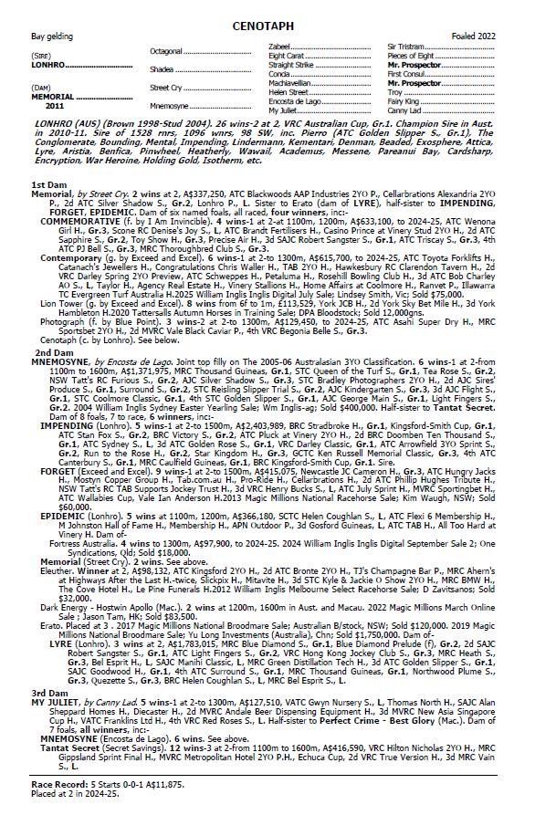 CENOTAPH (AUS) 2022 Bay Gelding by Lonhro (AUS) out of Memorial (AUS)